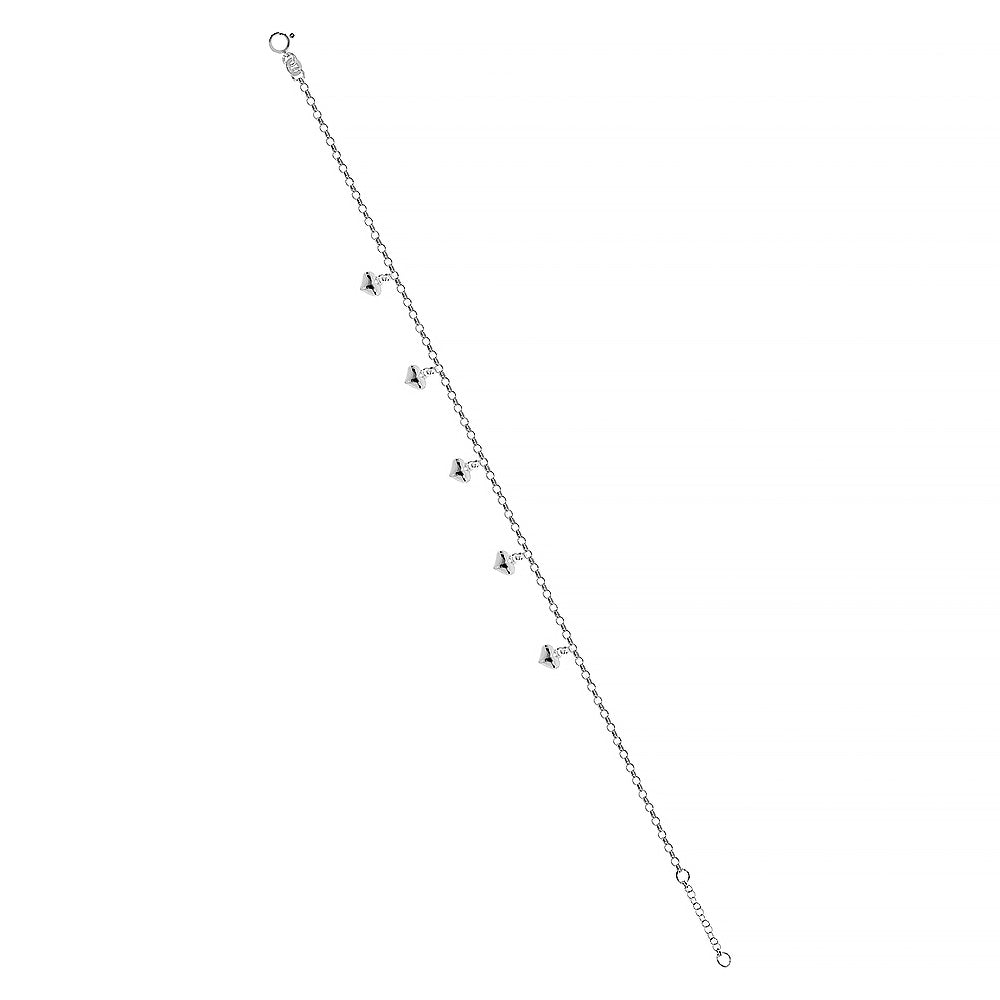 Silver belcher link anklet, 5 x heart drops 23+2cm