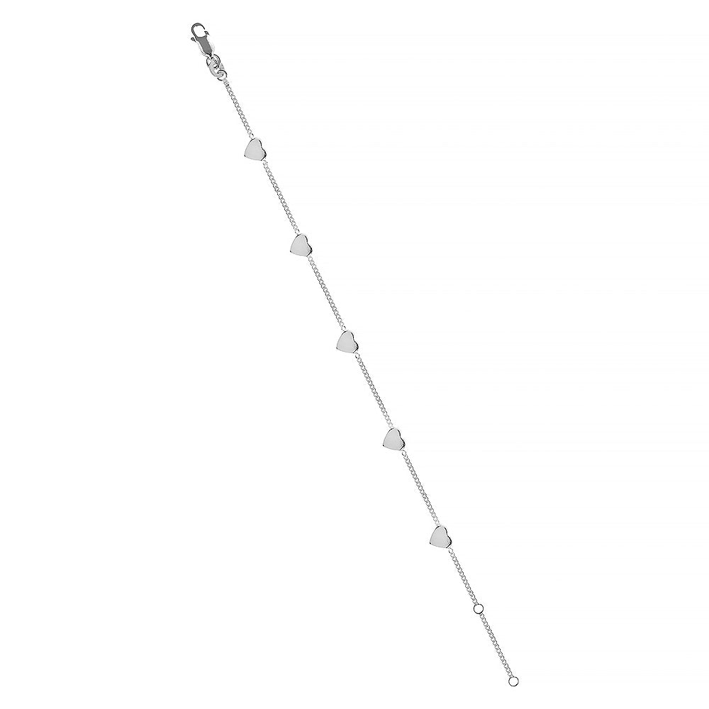 Silver curb link bracelet with 5 x heart disc 16+3cm