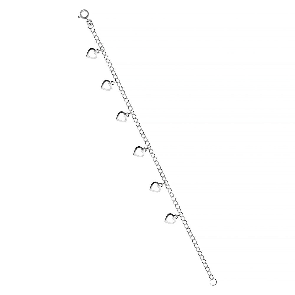 Silver open link bracelet, 6 x cut out heart drops 16+2cm
