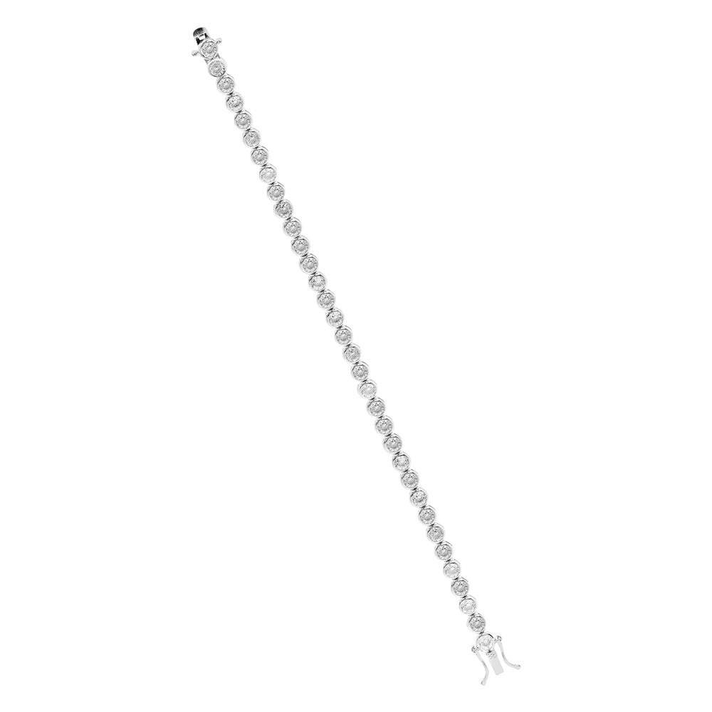 Silver rub over white cz tennis bracelet