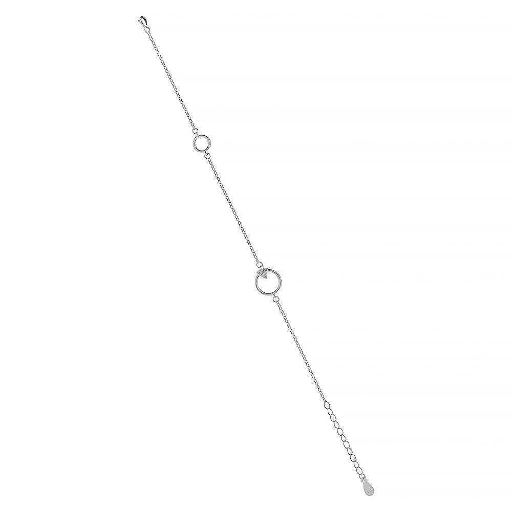 Silver bracelet, circle with CZ triangle in, circle, 17+3cm