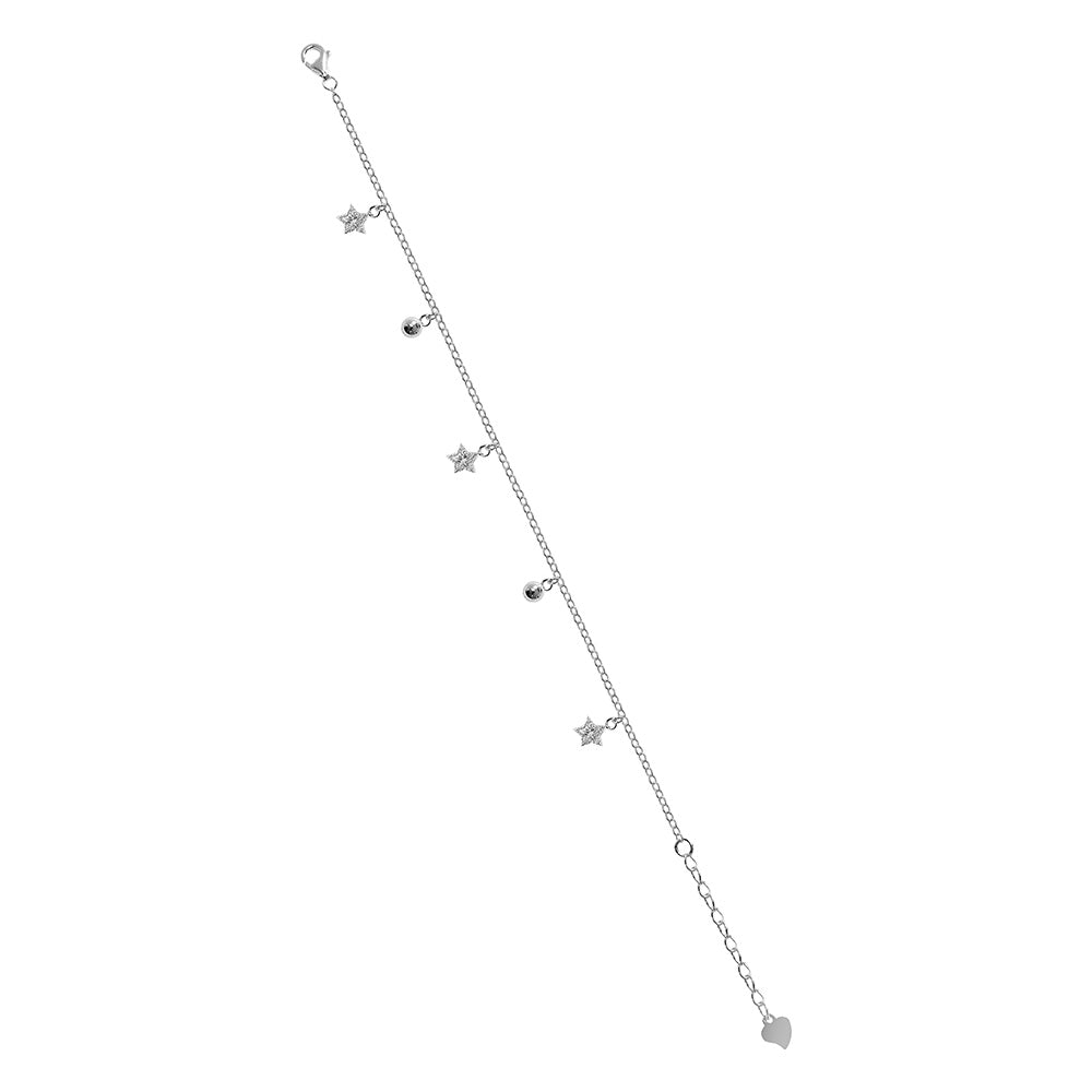 Silver trace bracelet with 3x cz stars, 2x balls 16.5+3.5cm