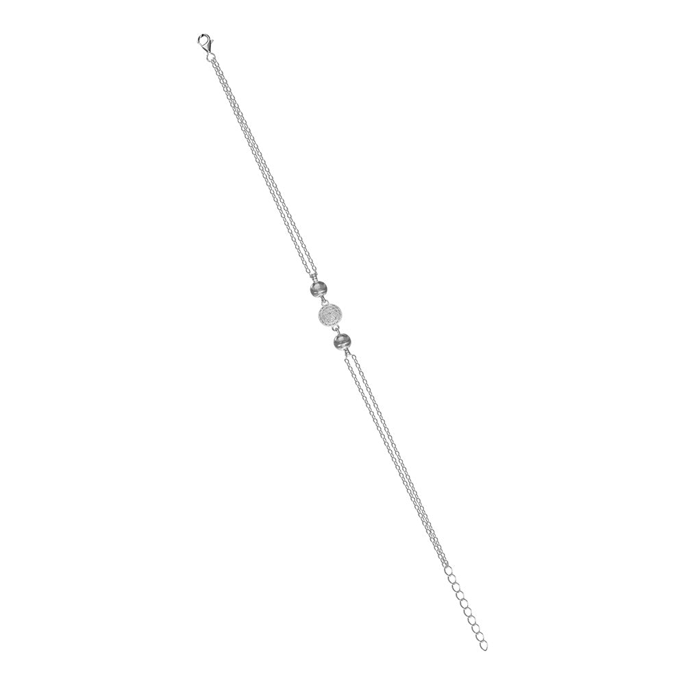 Silver double chain bracelet with 3 x ball centre (CZ) 7.75"