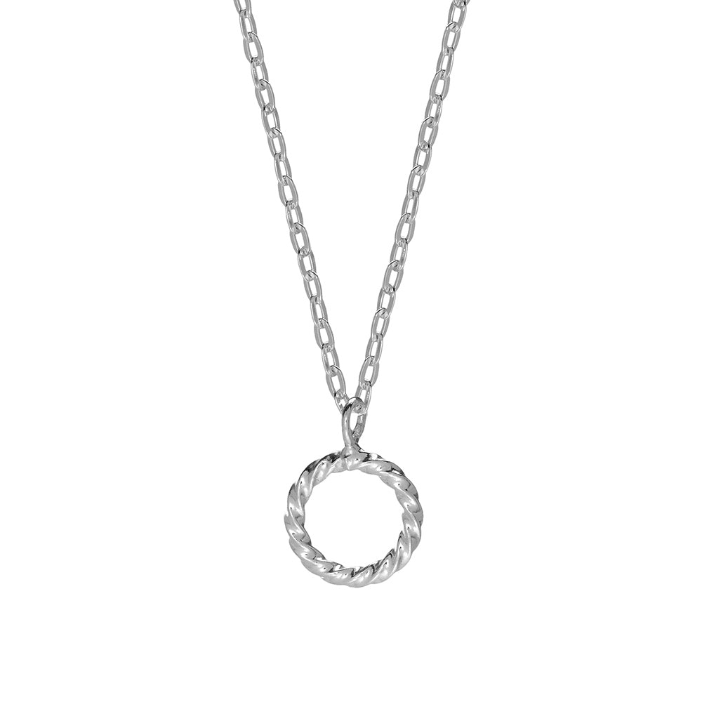 Silver trace chain with rope cut out circle pendant 40+5cm (Matches AUS11)