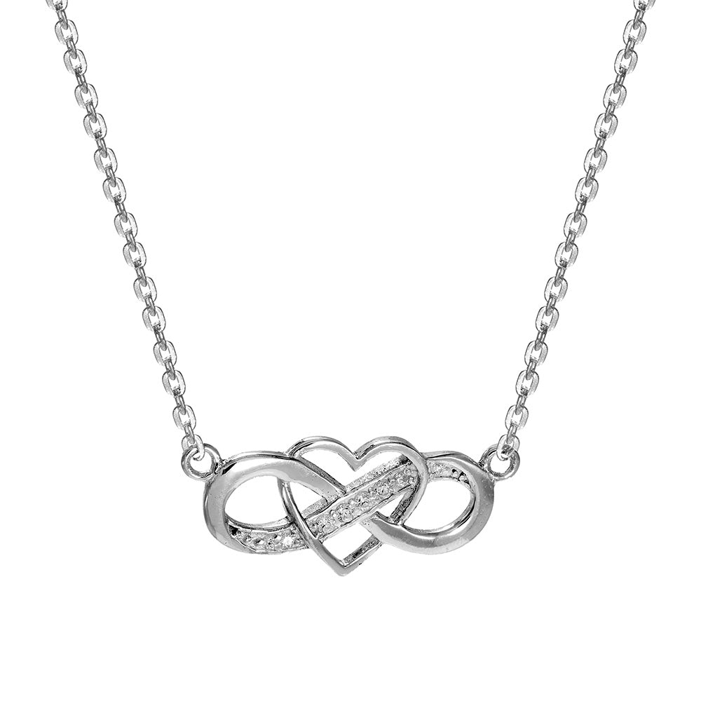 Silver chain with attached cz infinity with heart 42cm+3cm