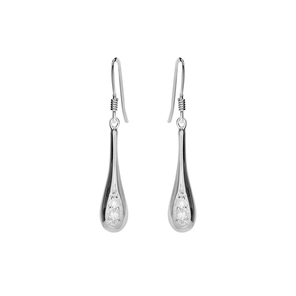 Silver long thin tear drop earring with a cz bottom (Matches AUP14)