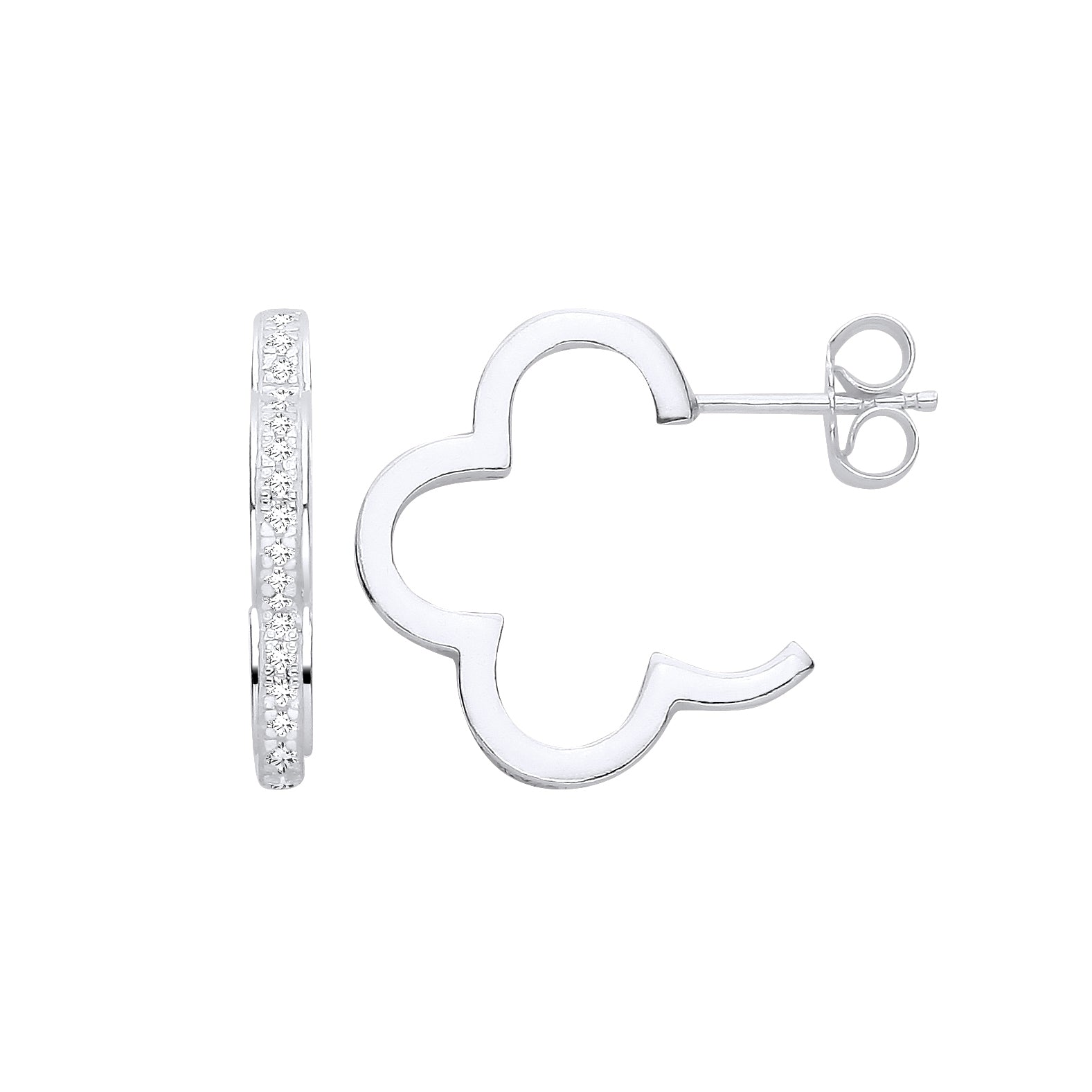 Silver CZ Hoops - Daisy shape - stud fastener - 18mm