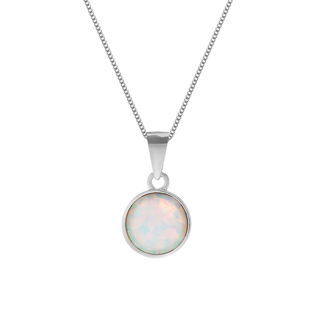 Silver round 8mm SYN opal rub over pendant (Matches AUS45)
