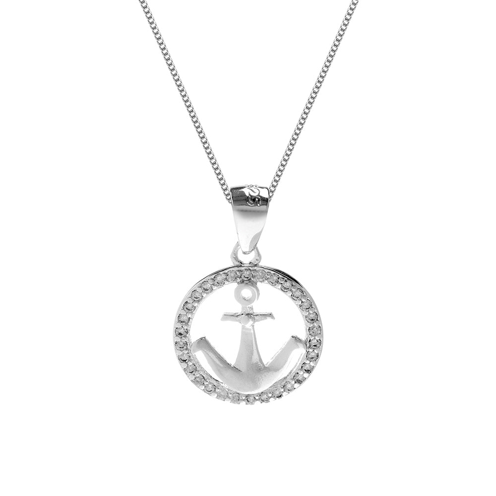 Silver anchor studs with cz surround circle pendant (Matches AUS51)