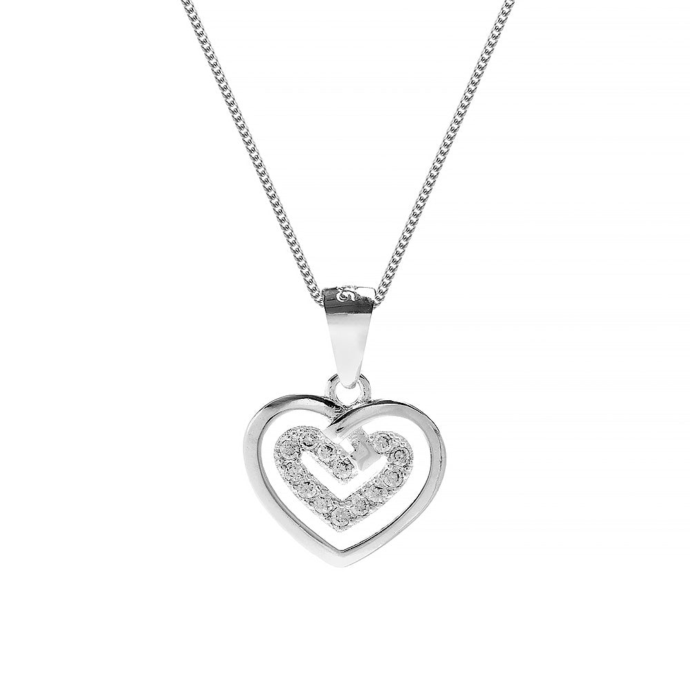 Silver double hearts pendant with cz inner rim (Matches AUS58)