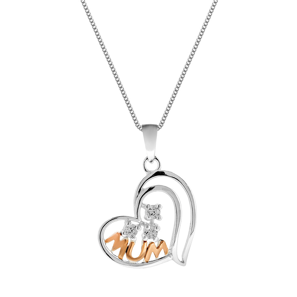 Silver Heart pendant with MUM in Rose plate and 3xcz