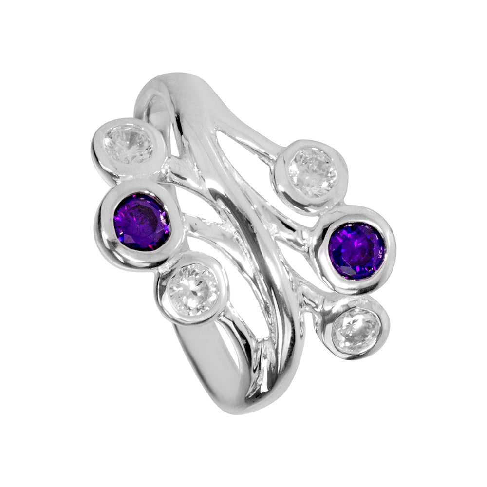 Silver Bubble design ring with purple and white cz's - Size O