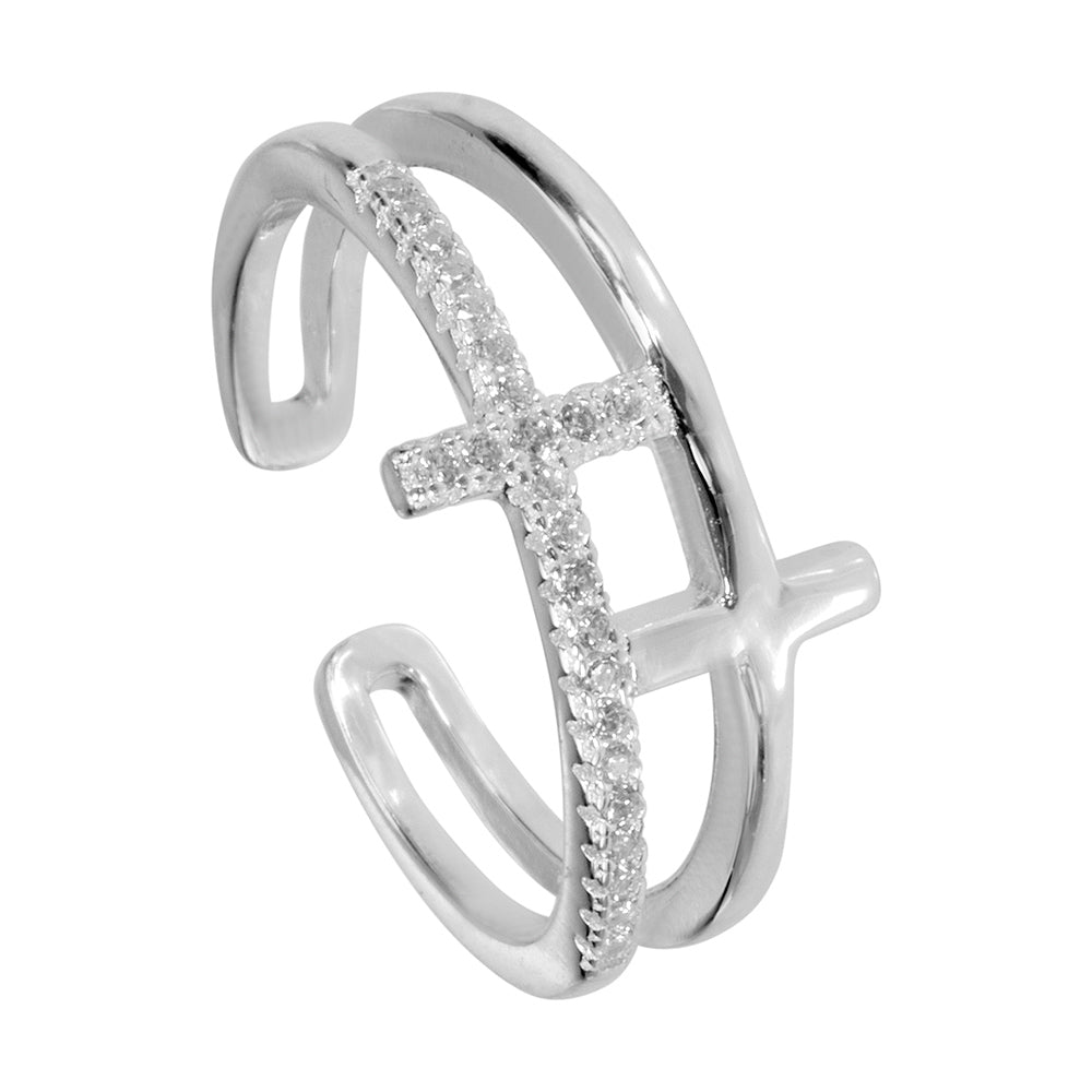 Silver cz cross and plain cross OPEN backed ring - Size K