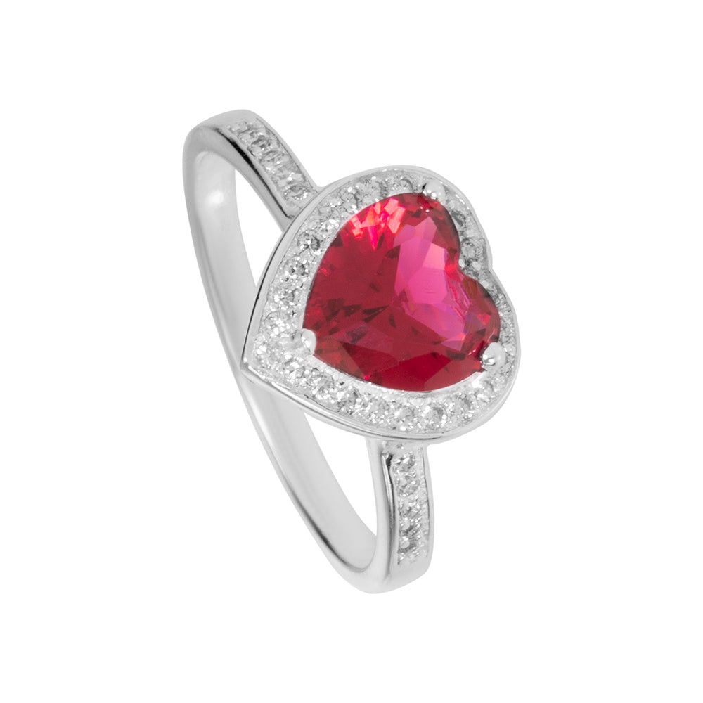 Silver RED CZ Heart with white cz surround Ring - Size M