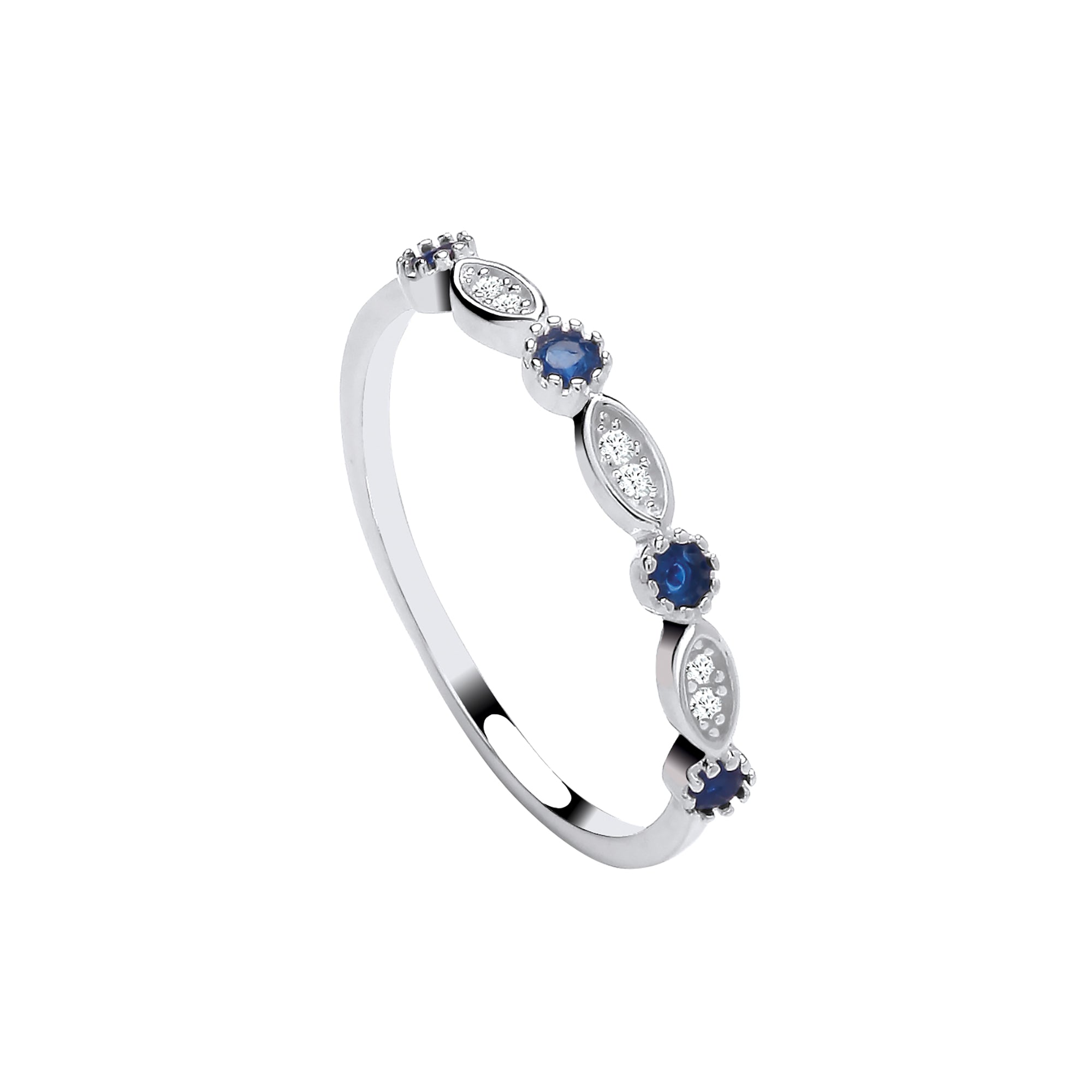 Silver marq/round shaped CZ/Blue.CZ half ET Ring