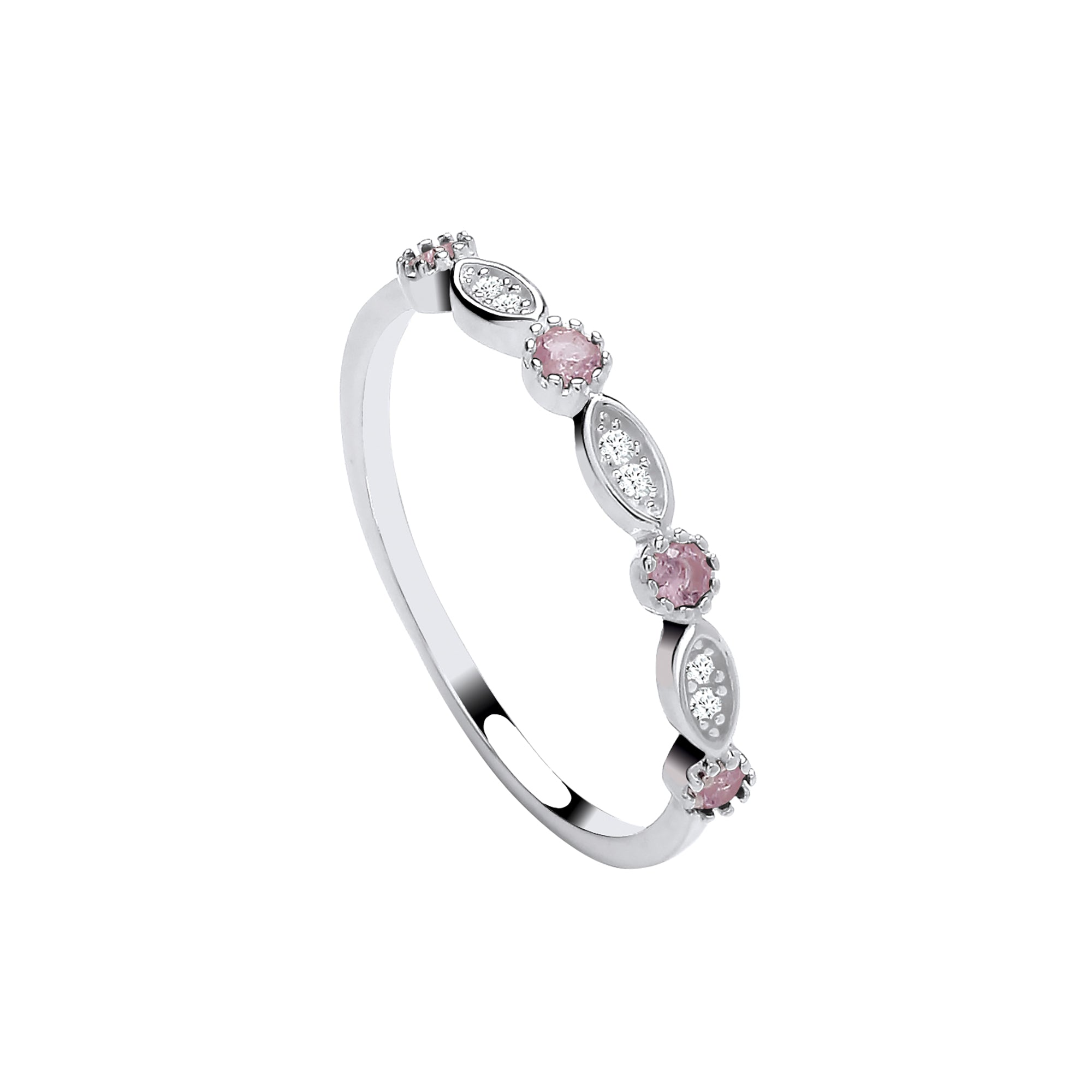 Silver marq/round shaped CZ/Pink.CZ half ET Ring