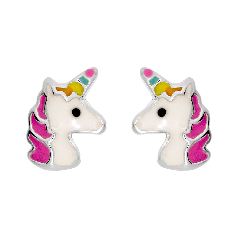 Silver enamel unicorn studs