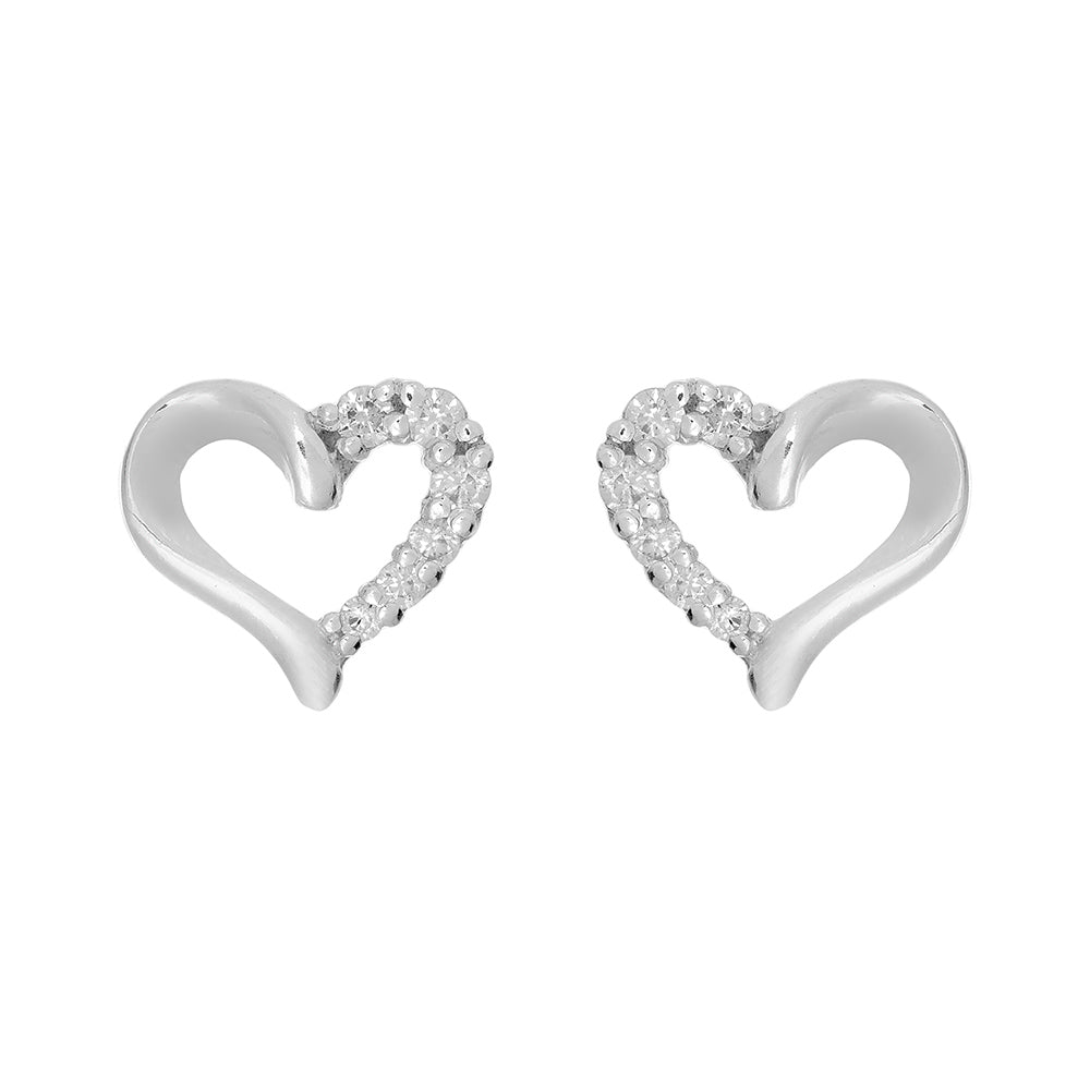 Silver cut out heart stud (one side with cz's) (Matches AUC23)