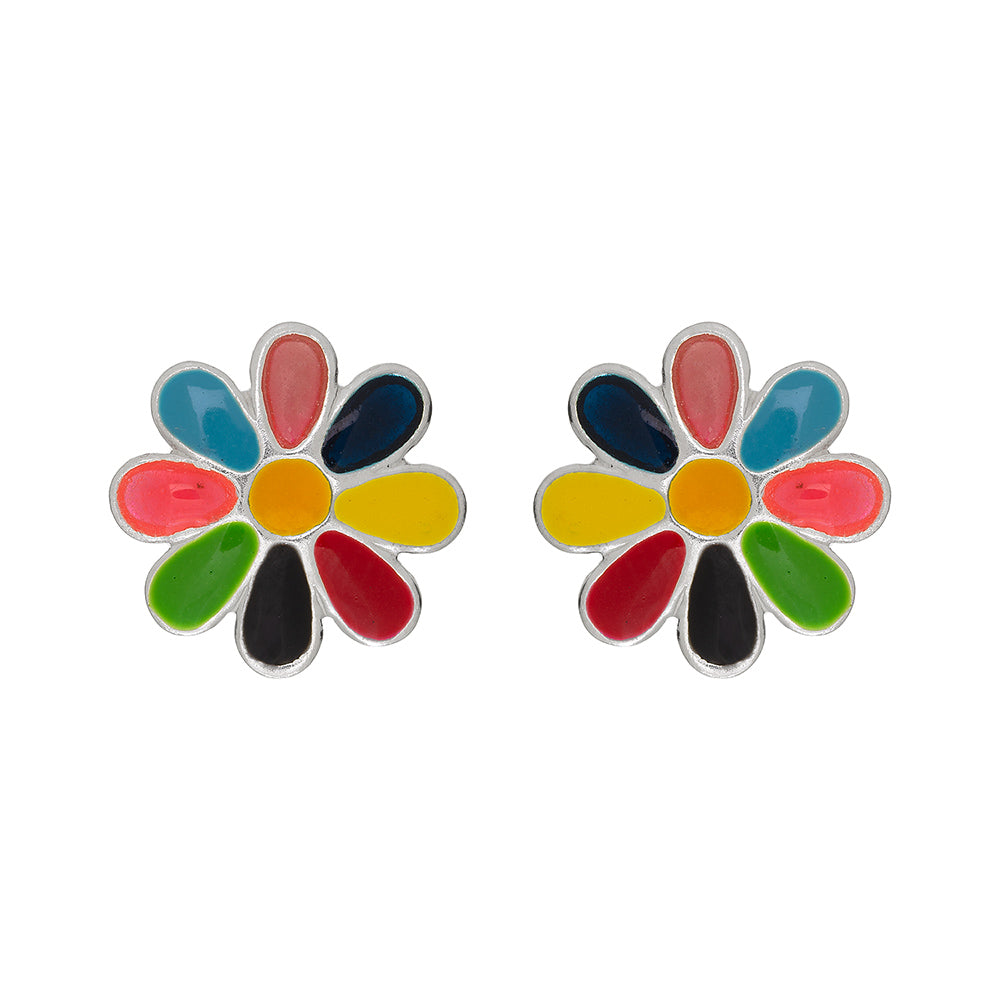 Silver Multi Coloured enamel Daisy Stud (SER256)