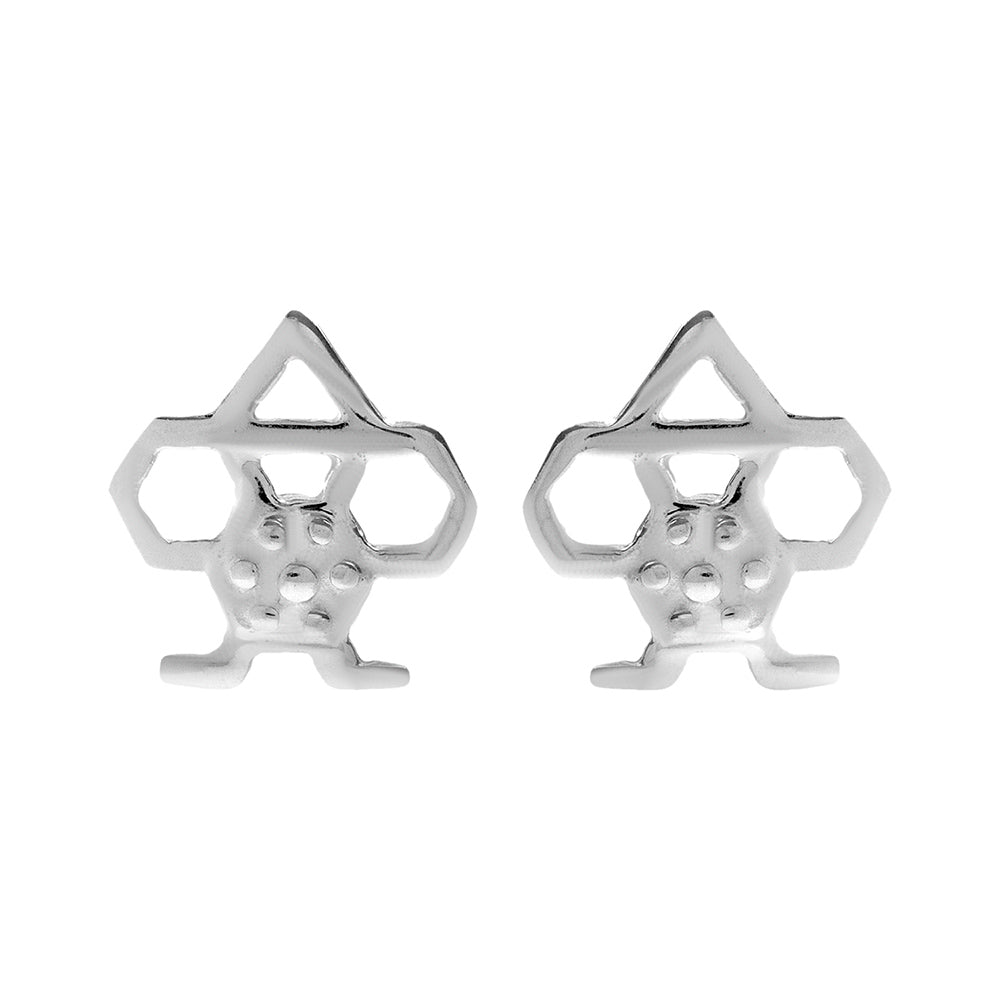 Silver bee and honey comb deisgn stud