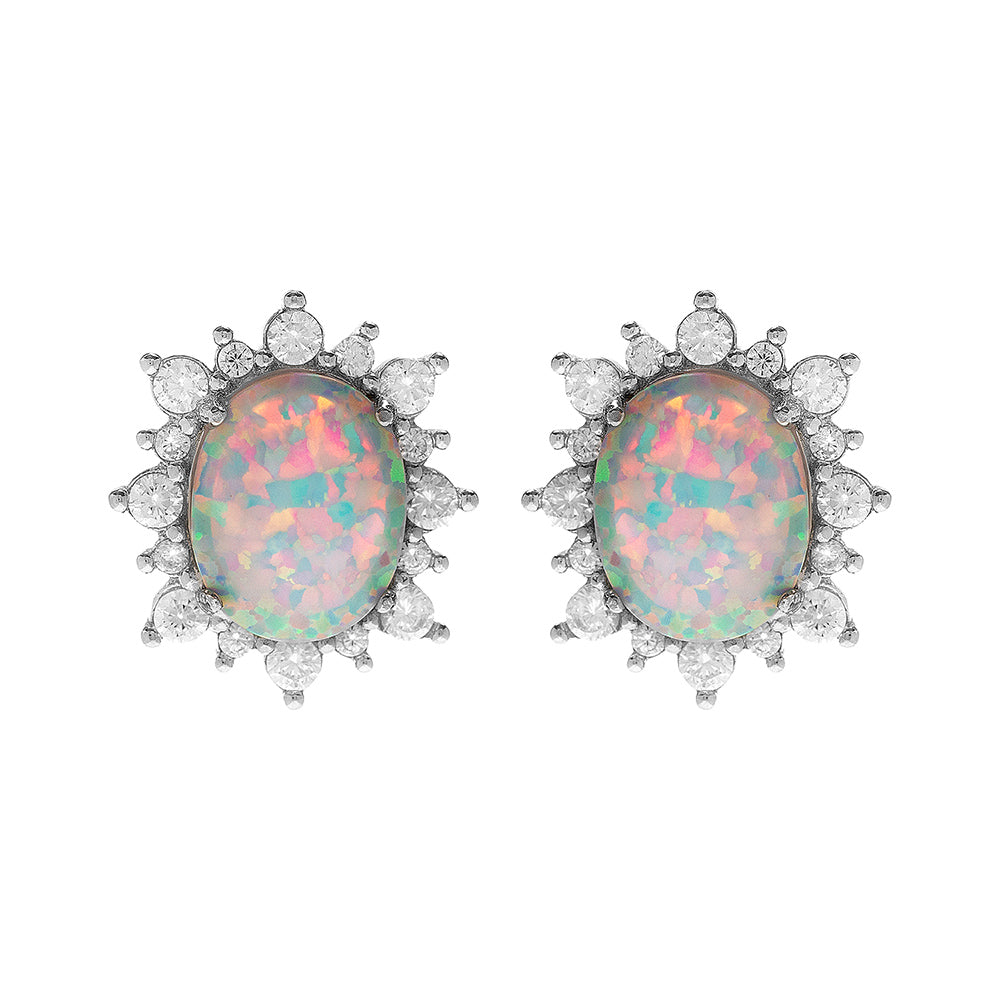 Silver 10*8 oval SYN opal and CZ surround stud (Matches AUP47)