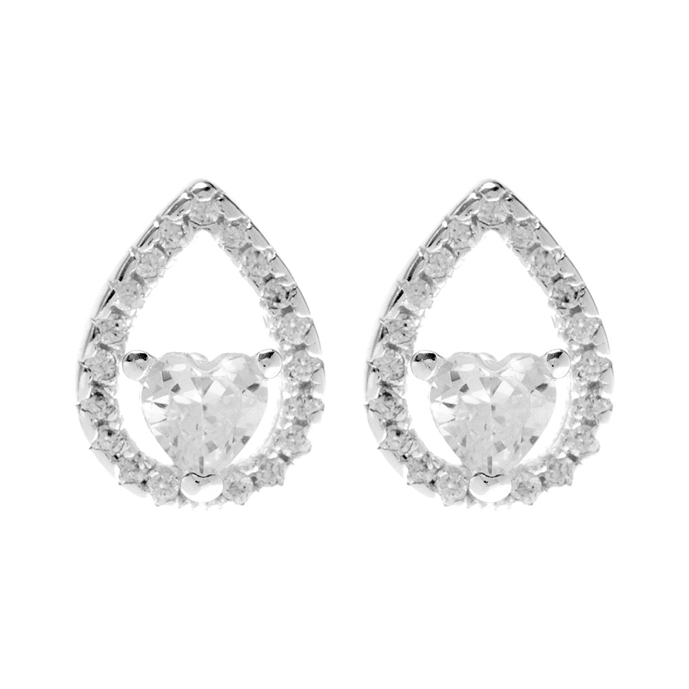 Silver round cz with tear drop surround stud (Matches AUP49)