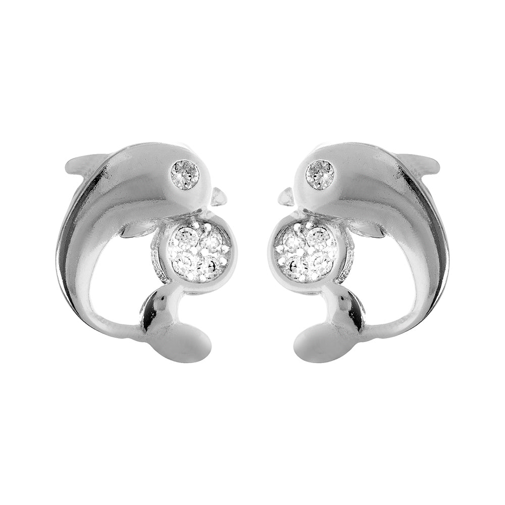 Silver dolphin with cz ball