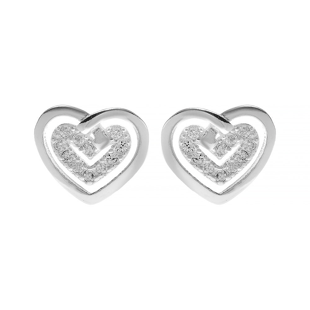 Silver double hearts studs with cz inner rim (Matches AUP58)