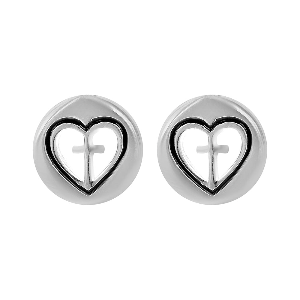 Silver round circle with heart onyx rim with cross stud (Matches AUP83 & AUB83)