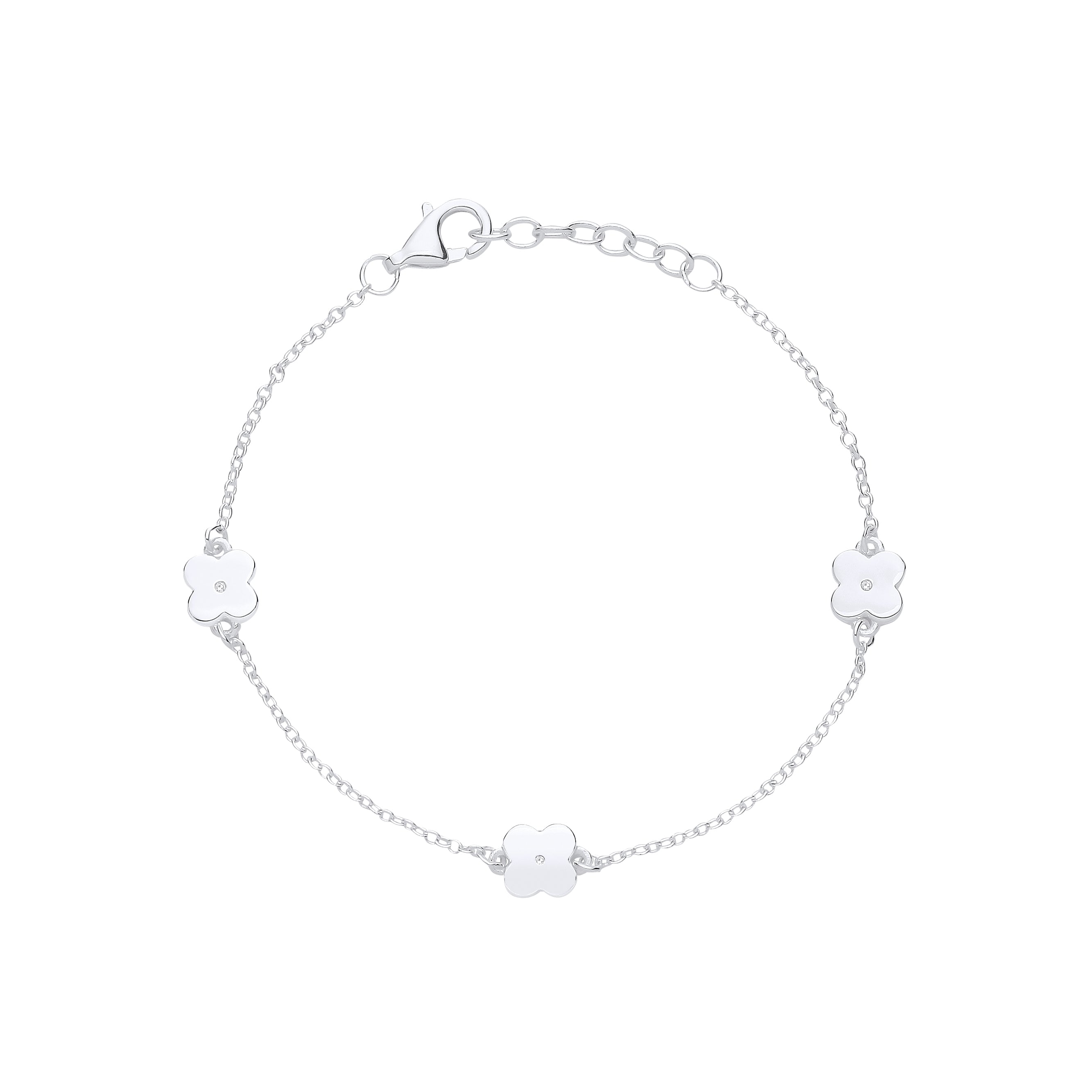 Silver Daisy Bracelet, 6*6, 14cm+2cm, Diamond - 0.8*3