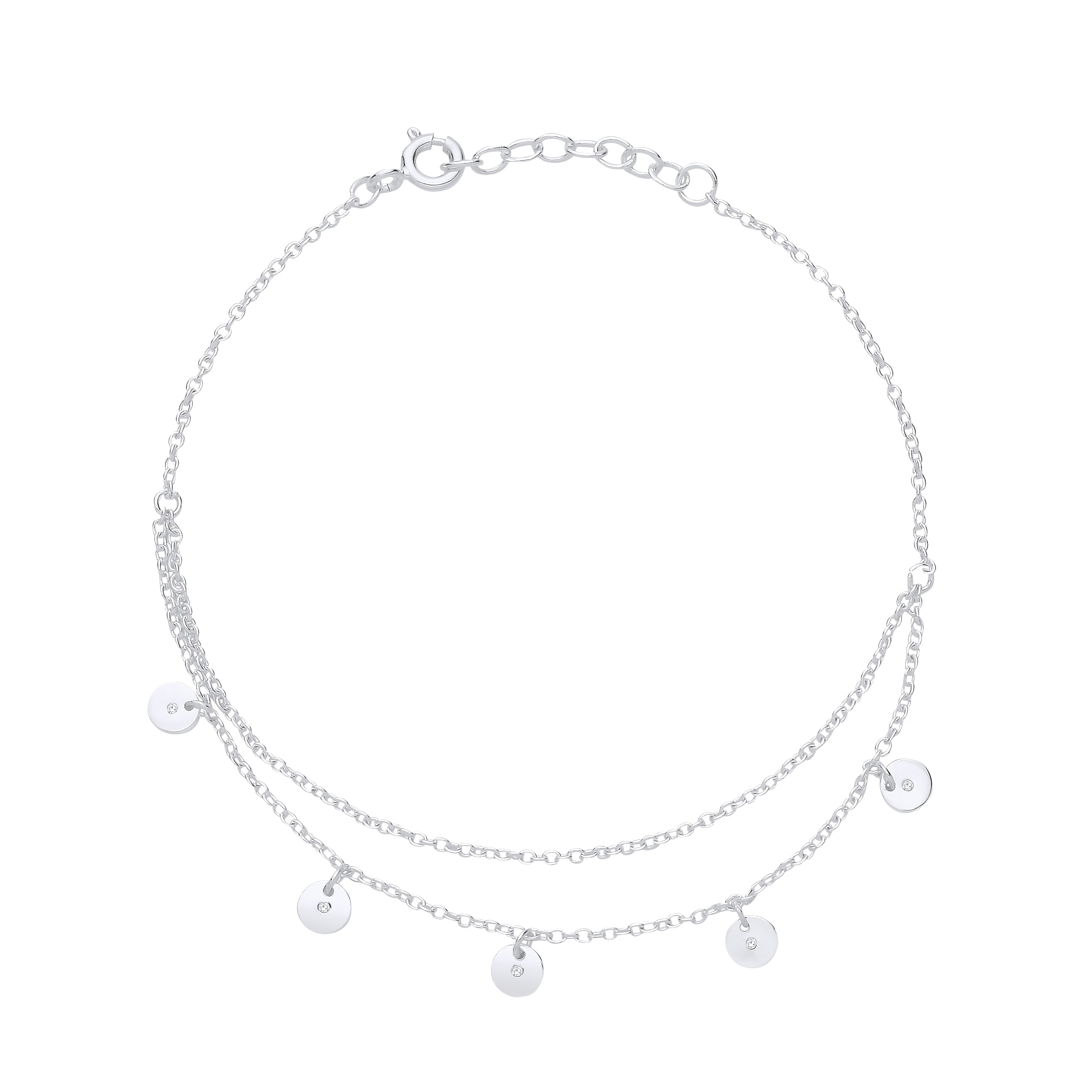 Silver double bracelet with discs (4.2mm), Diamond 0.8mm*5, length - 6.5"+10mm