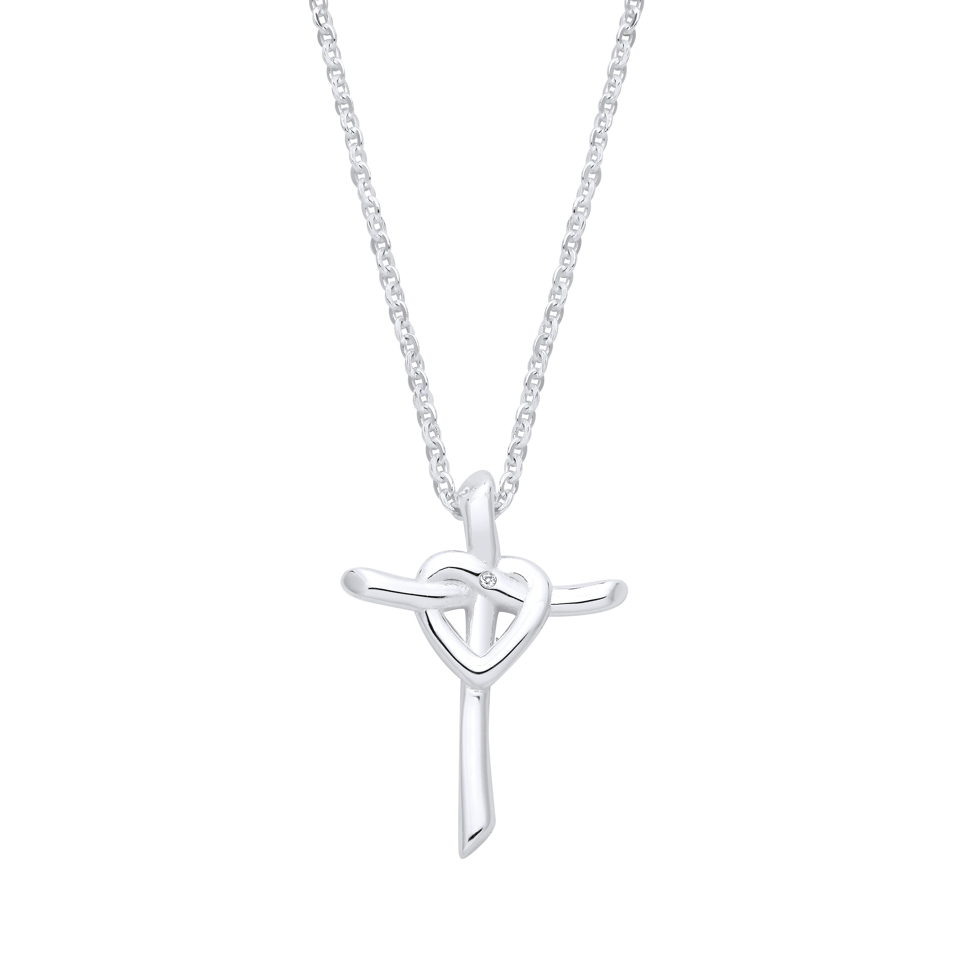 Silver Cross with heart centre. 1 x diamond - 0.8mm (18"chain)