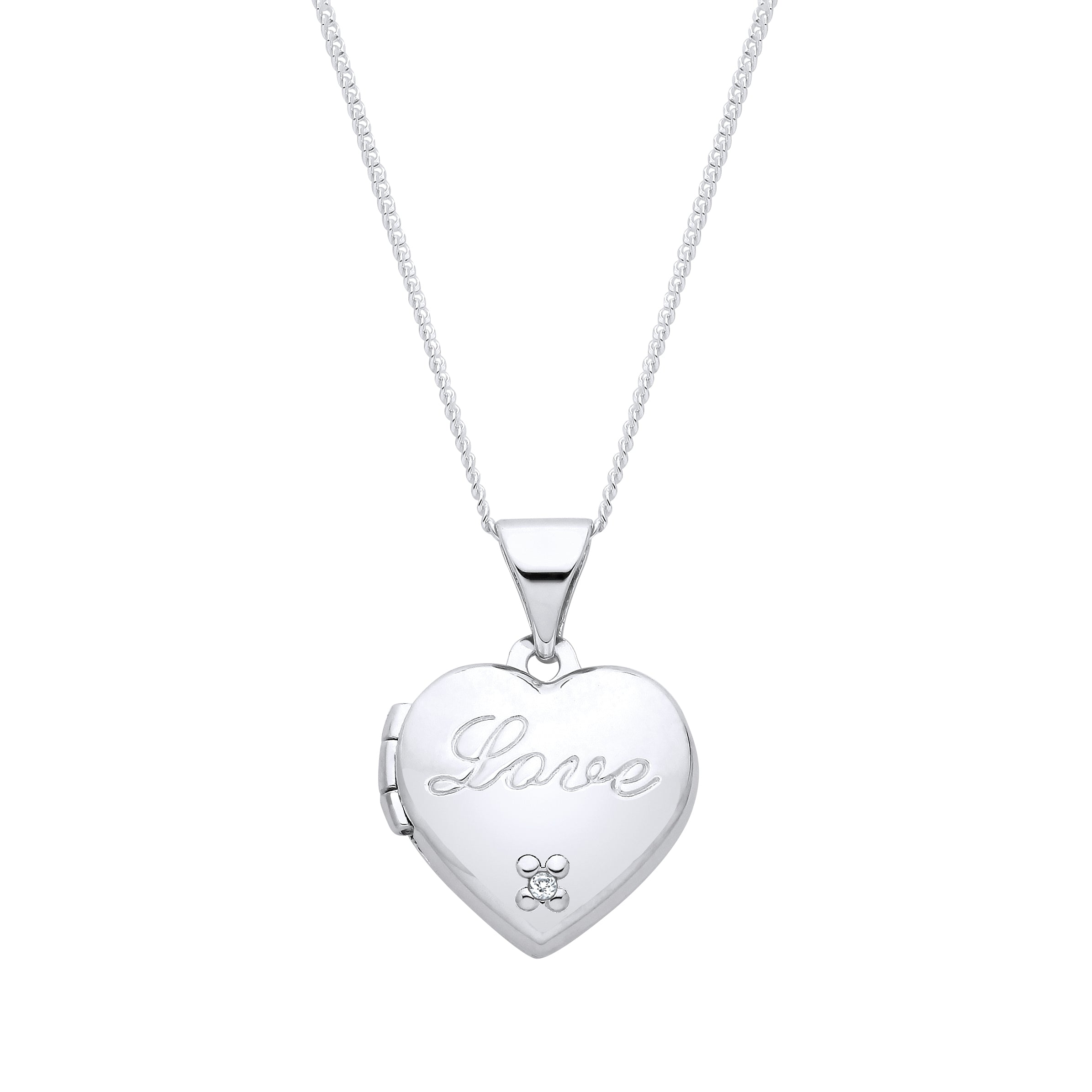 Silver Heart LOVE locket with Diamond - 12*12 - Chain 14"+2"