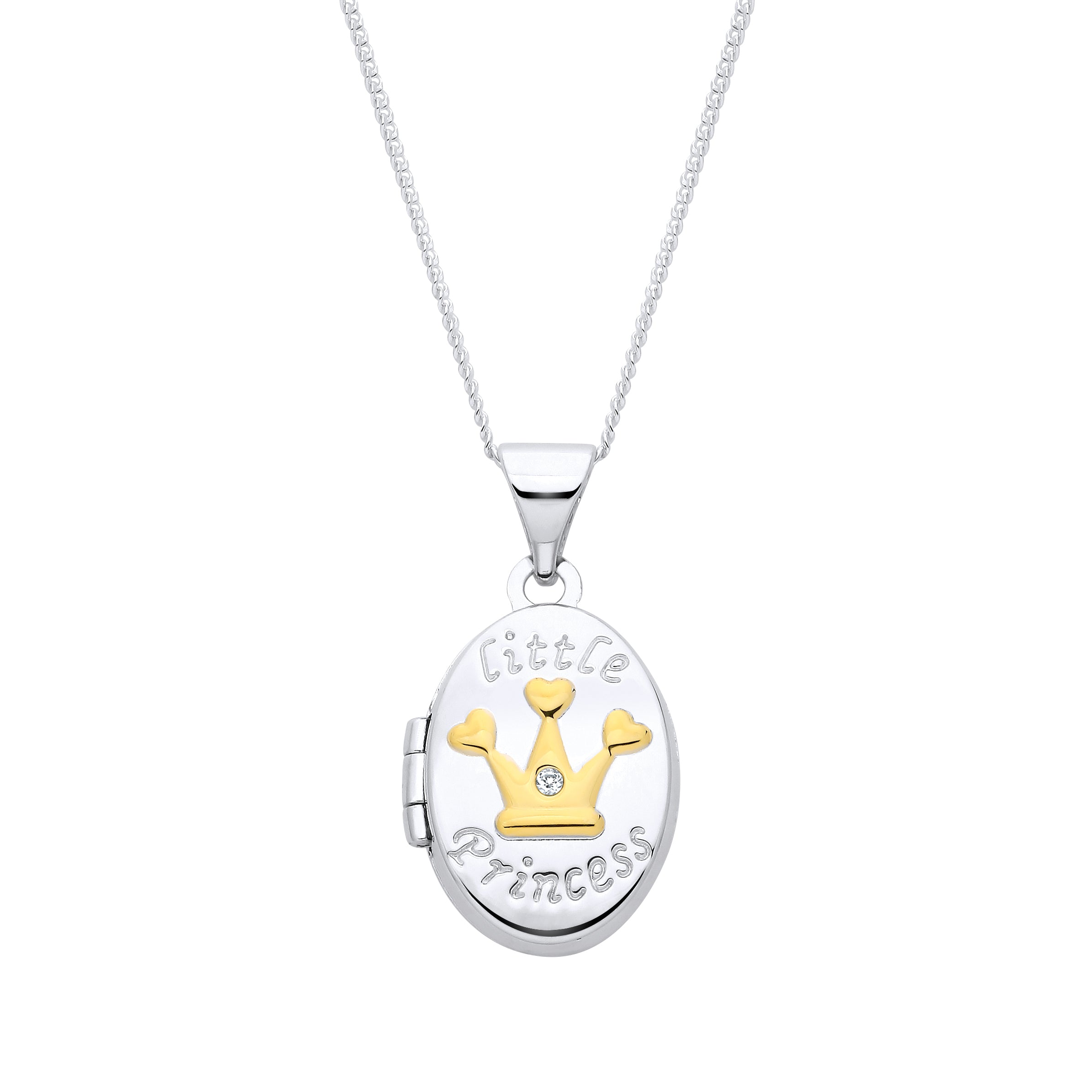 Silver Little princess (Gold plate) Crown. Diamond - 10*13 (verse rev) Chain - 14+2"