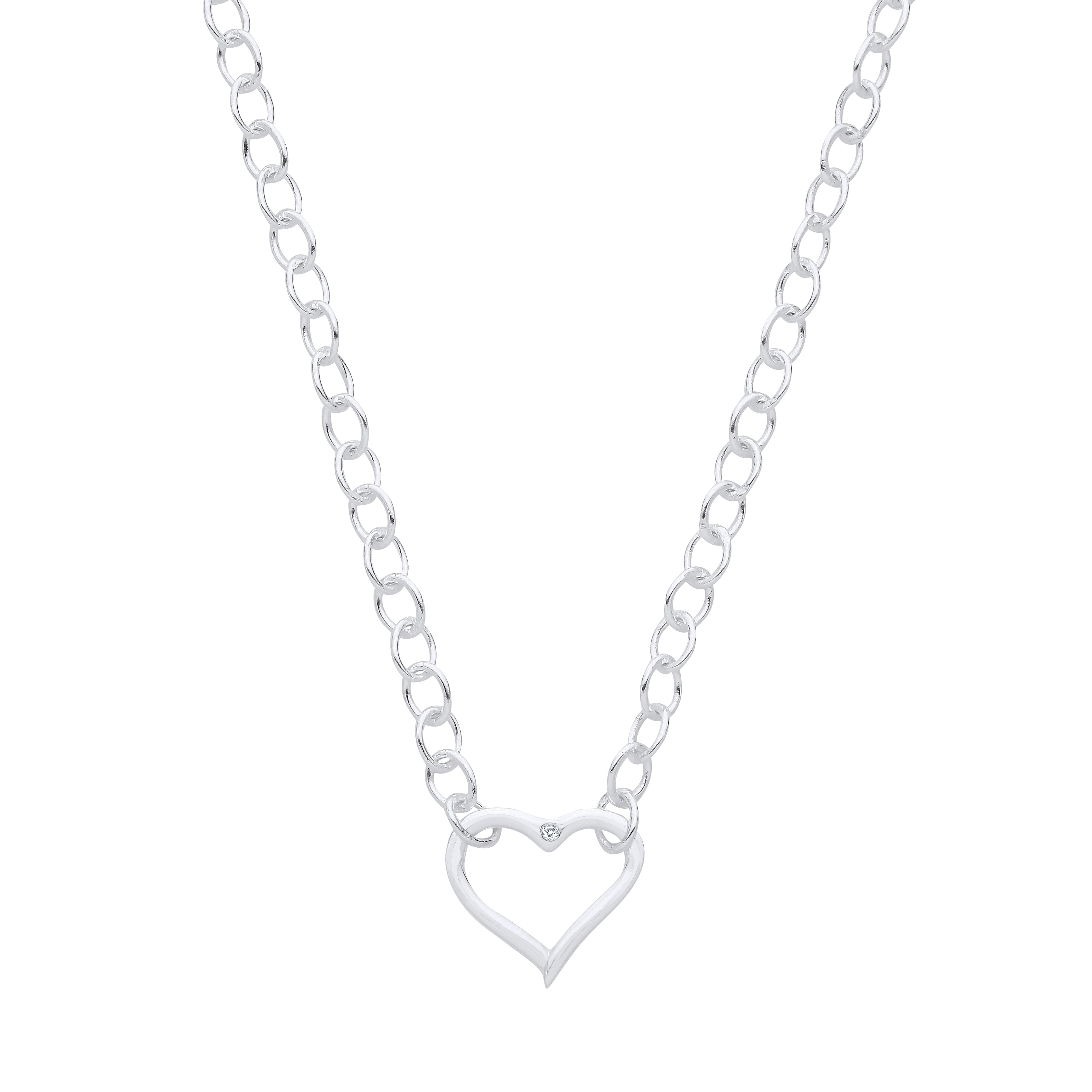 Silver heart necklace (10mm*10.5mm), 17" (43cm) , diamond - 0.8mm
