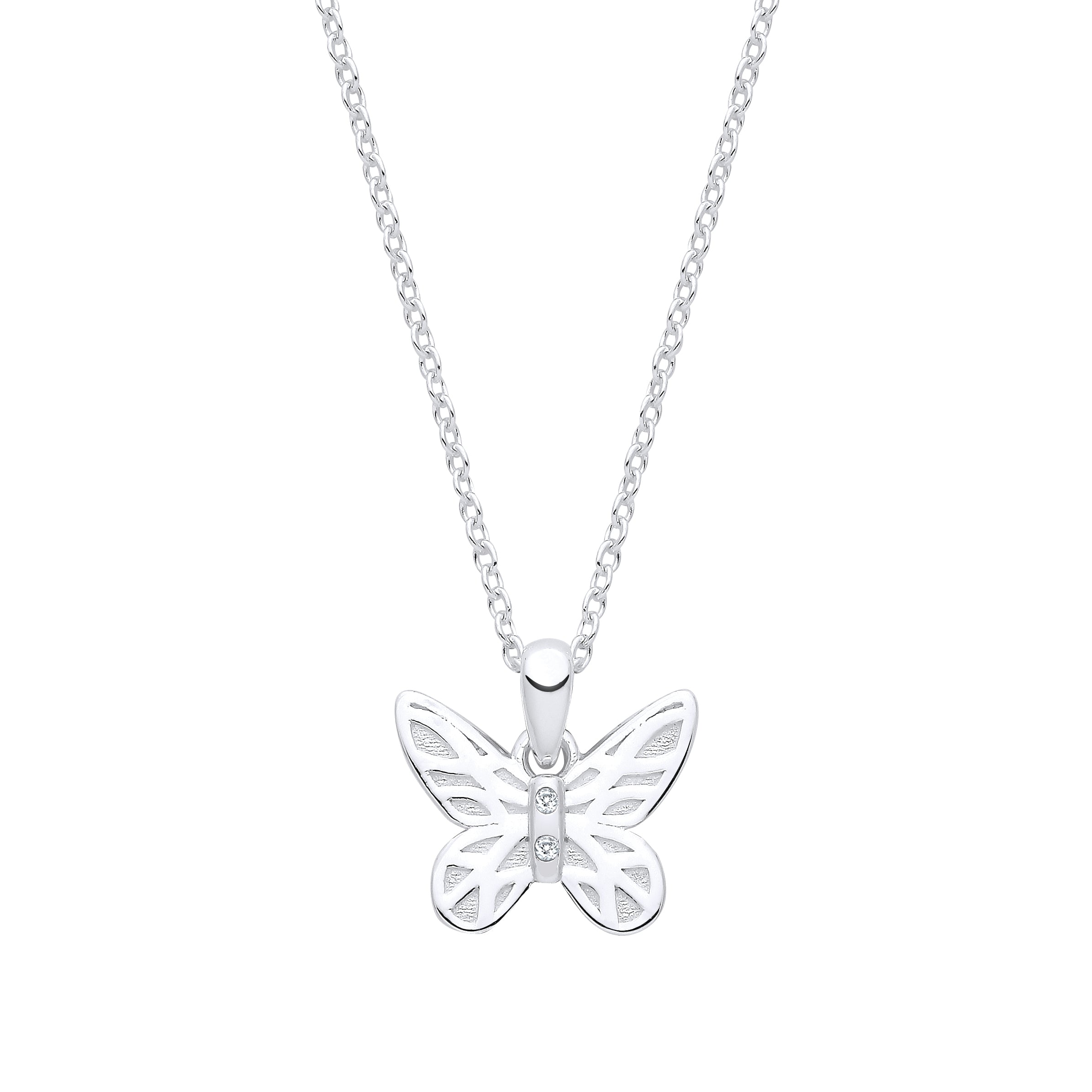 Silver Butterfly Pendant (10mm*12mm) on chain 14"+2", Diamond - 0.8mm*2