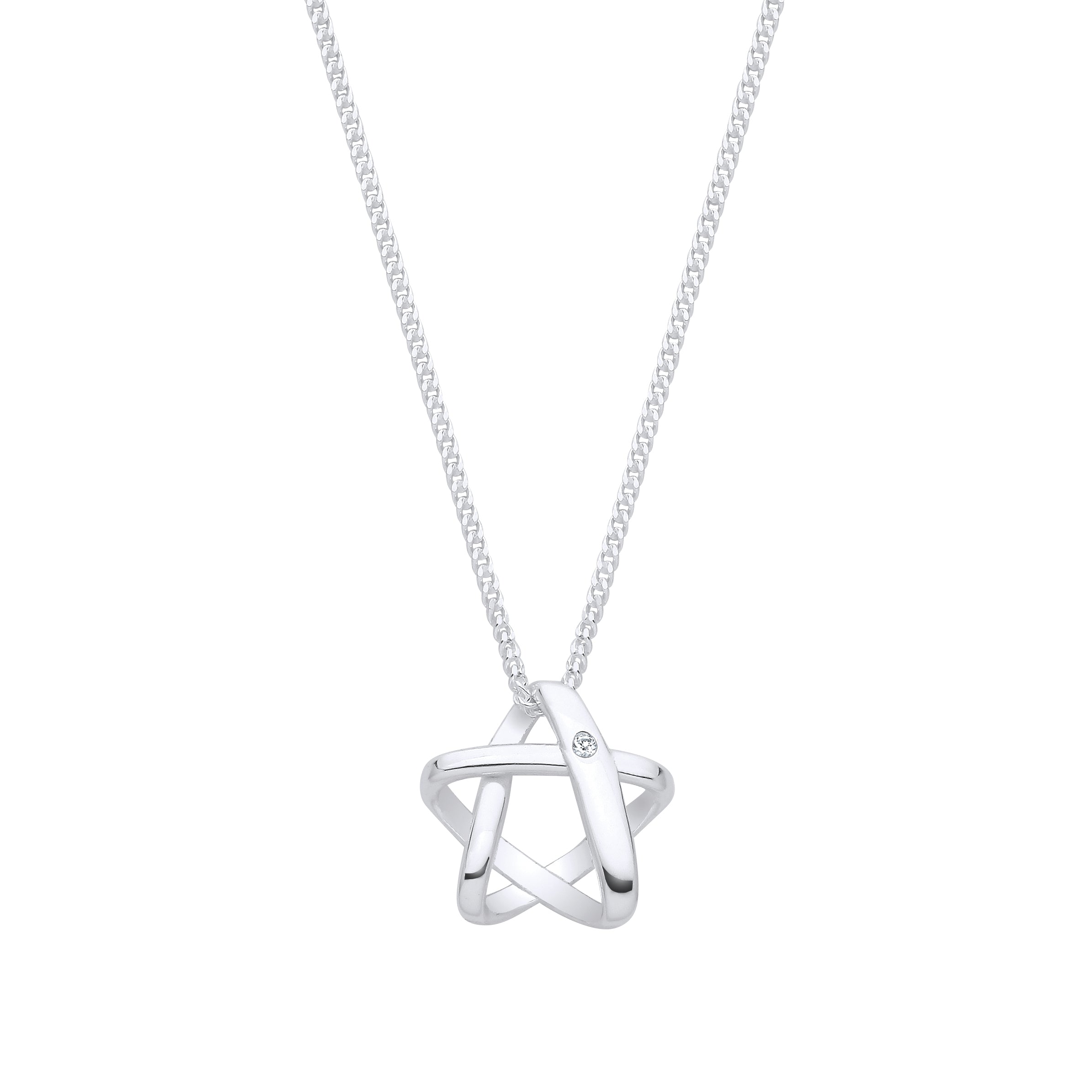 Silver Open 3D star pend, 9mm*9mm, diamond - 0.8mm, 14"+2" chain