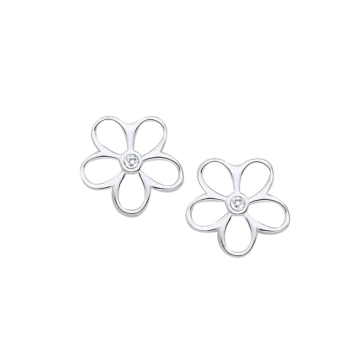 Silver Open Daisy stud 6mm*6mm, diamond - 0.8mm