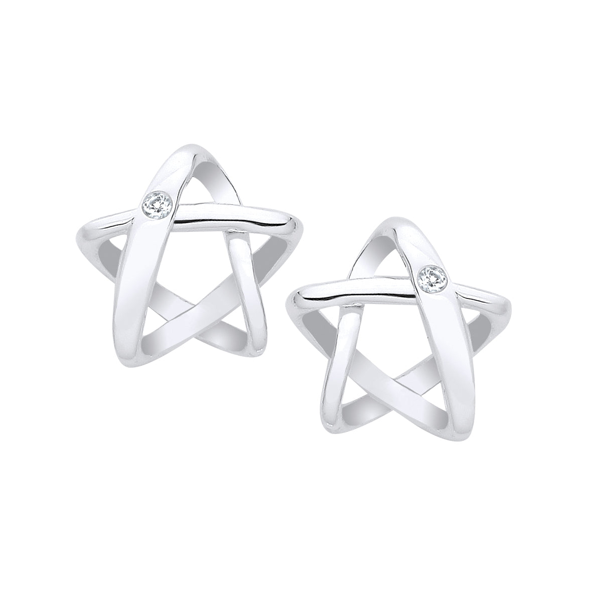 Silver Open 3D star stud, 8mm*8mm, diamond - 0.8mm