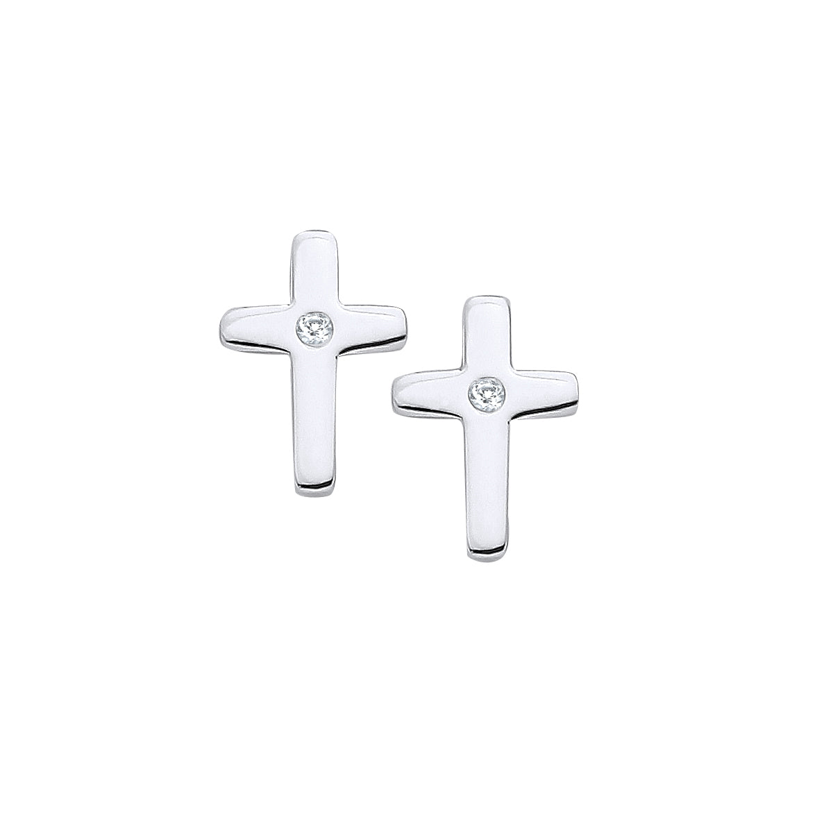 Silver cross studs (7mm*5mm) Diamond - 0.8mm