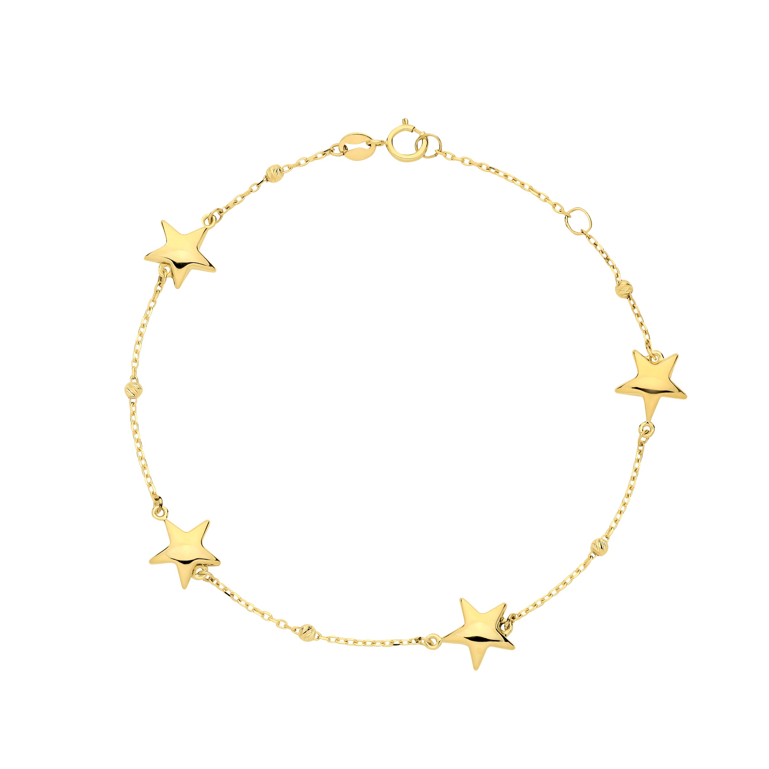9ct Yellow gold, chain bracelet with 4 stars and little balls