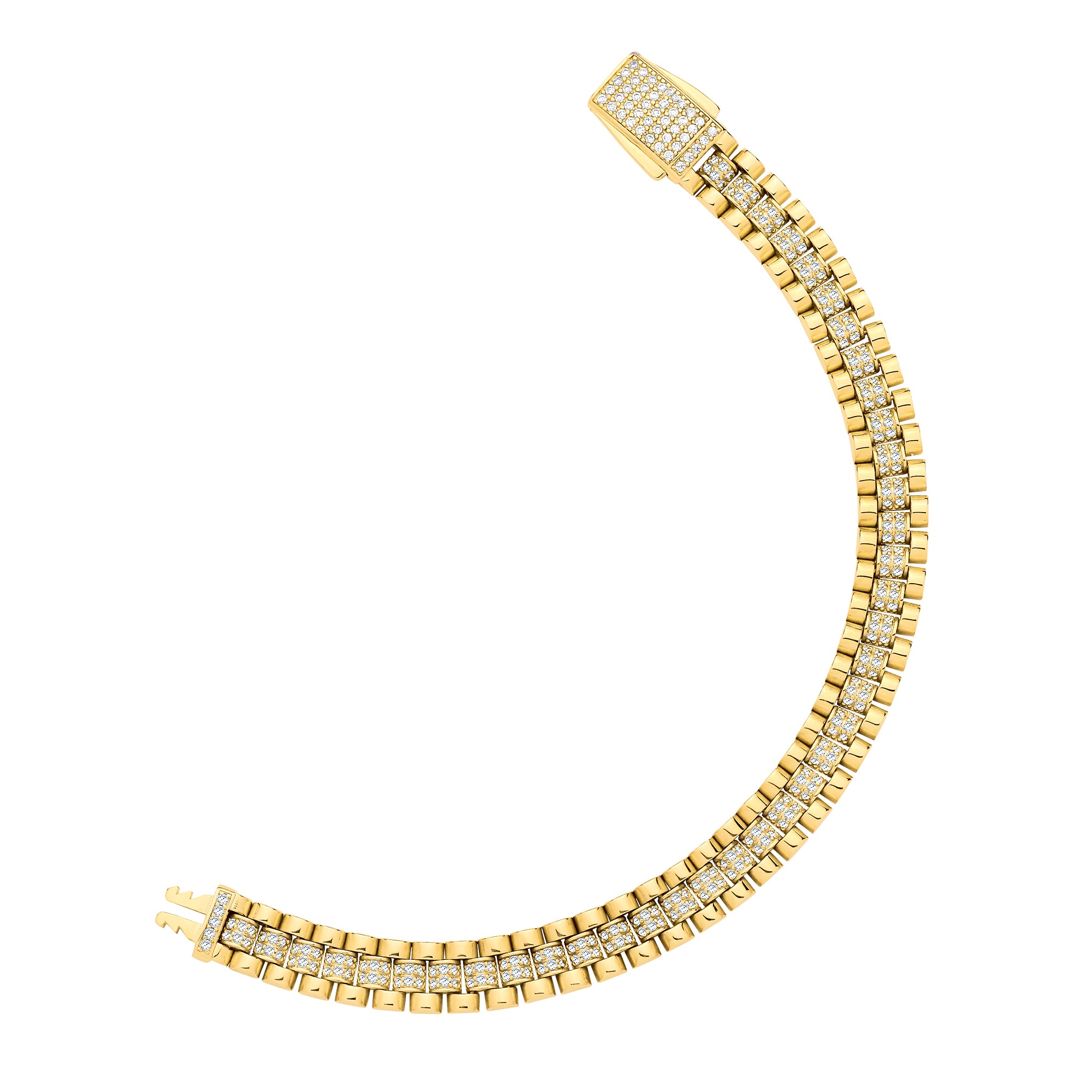 9ct Y/G 3 row brick & CZ Bracelet 7½" - 9mm Wide