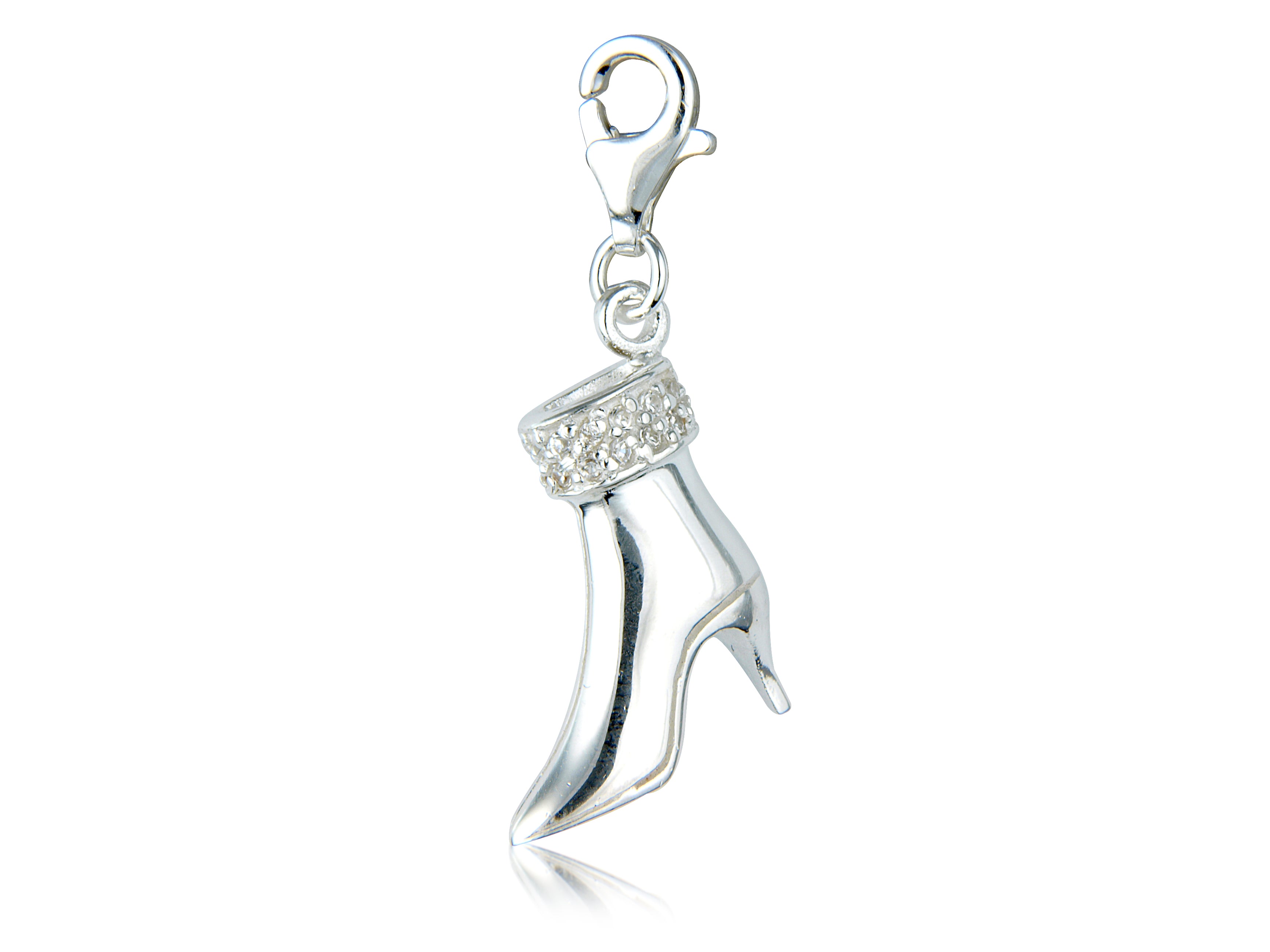 Silver Cz Set High Heel Boot Charm 16mm