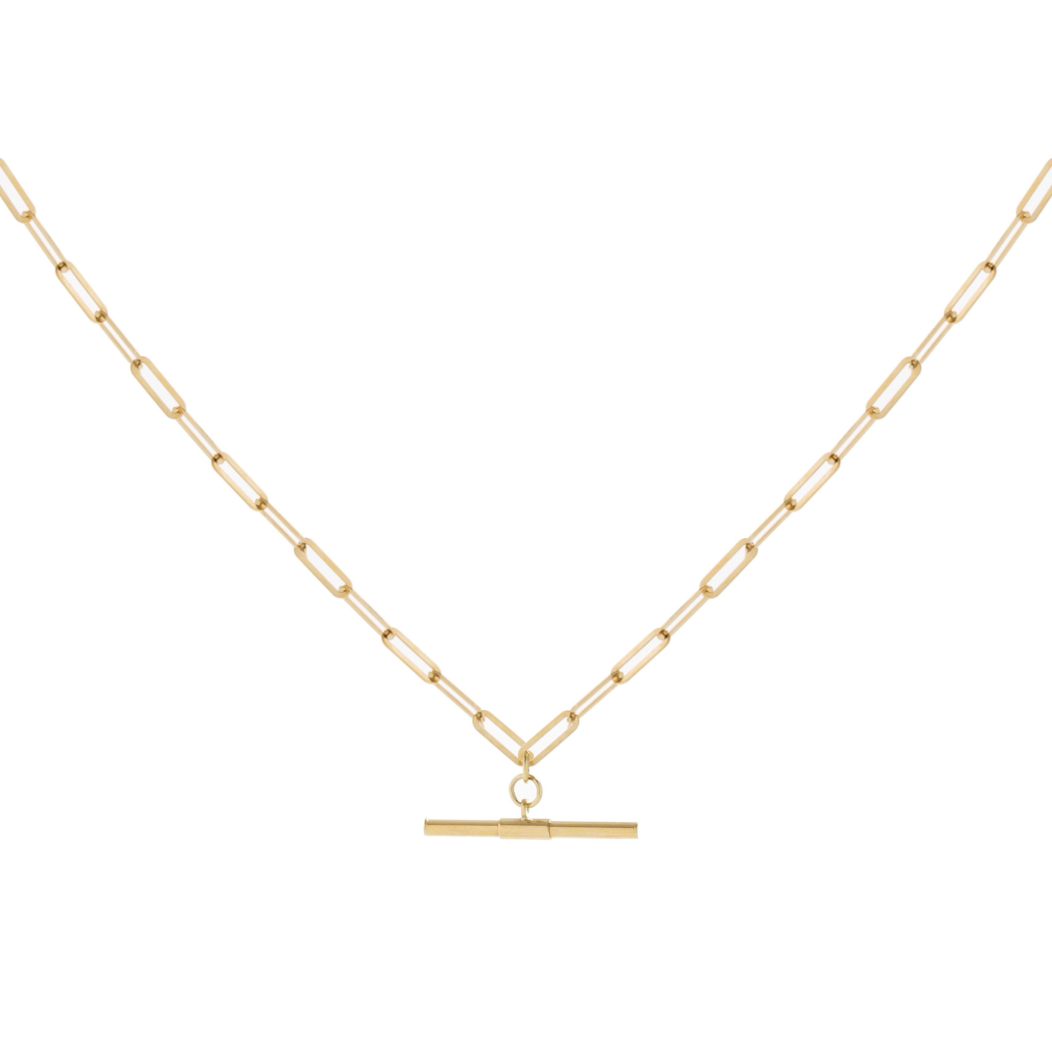 9ct y gold paper link chain with bar 23cm B289