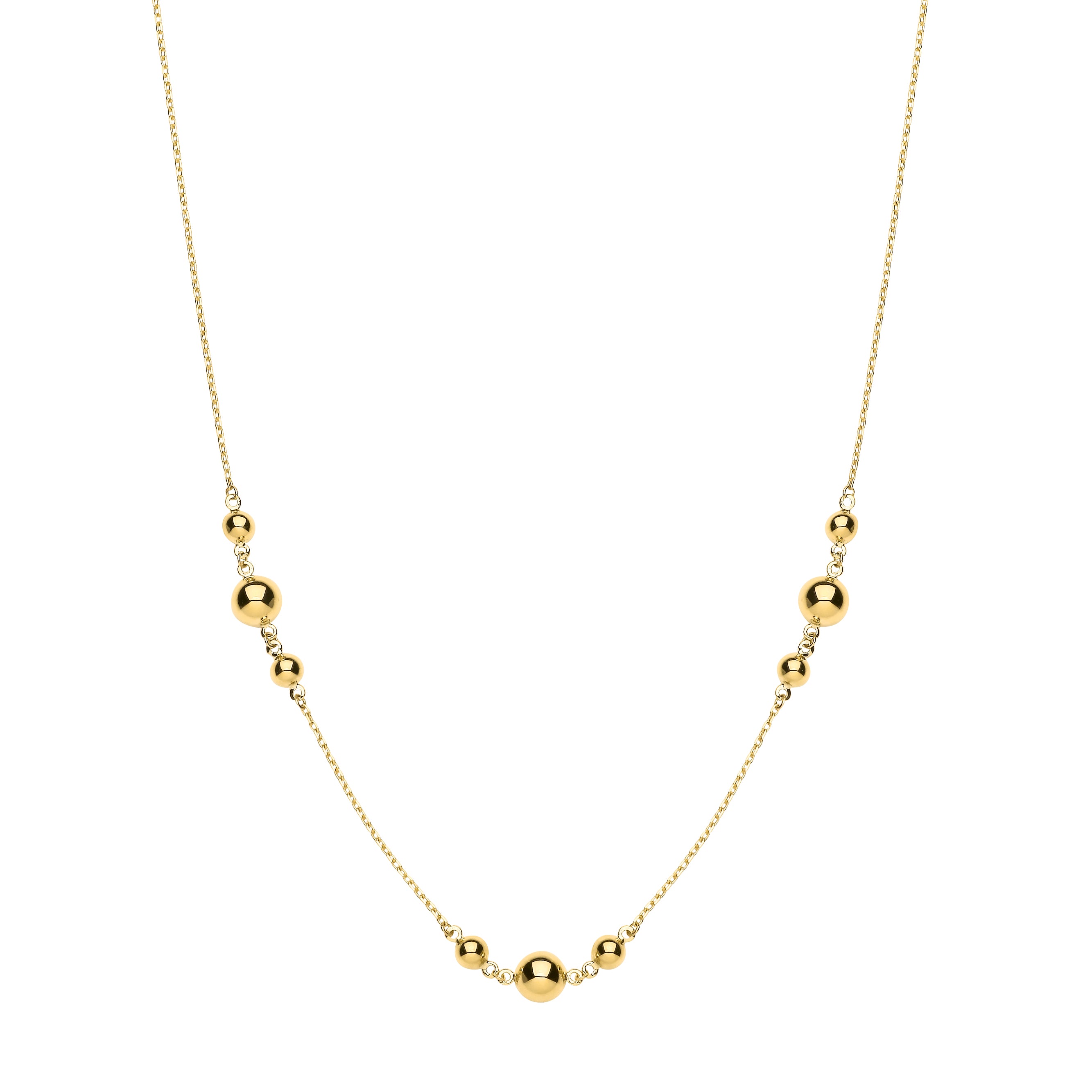 9ct Yellow gold, ball x 3 and chain necklace