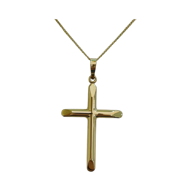9ct Yellow Gold 1.5mm cross with plain flat edge.