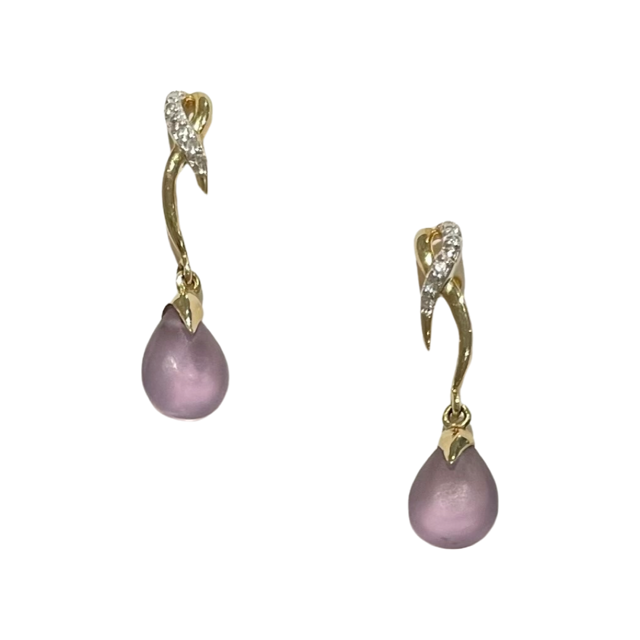 9ct Yellow gold Earrings with Satin Finish Amethyst and Diamond