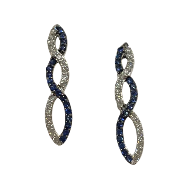9ct White gold Diamond 0.10ct and Saph 0.12ct Twist Drop Earrings