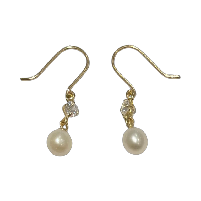 9ct Yellow gold Fresh Water Pearl & CZ Earrings