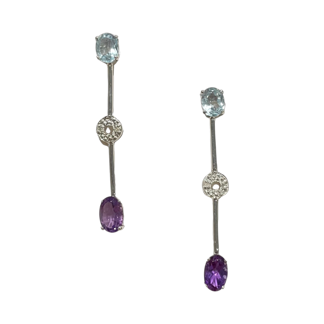 9ct Drop earring, BT & AM & Diamond 0.02ct